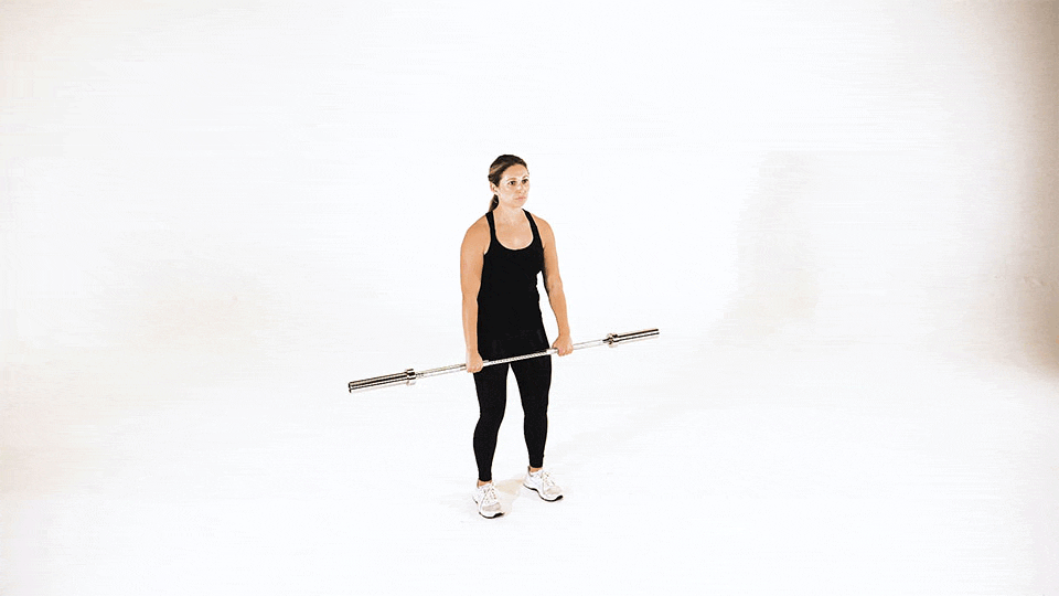 - برای شروع این تمرین؛ با یک هالتر جلوی پاهایتان شروع کنید و آن را کمی بالا ببرید تا موازی با ساق پاهایتان باشد.